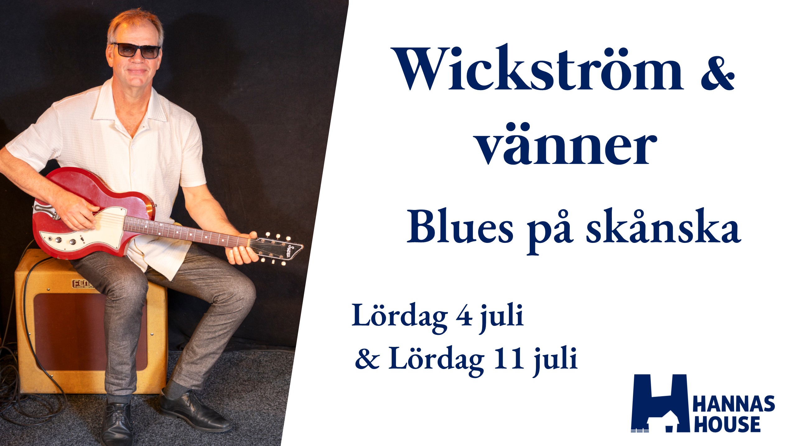 Två lördagar i rad blir det blues på skånska i Hannas House! Dom här ljuvliga sommarkvällarna levererar krögaren själv bluesfavoriter på skånska tillsammans med handplockade musiker och sångare. Som alltid när Sven Wickström bjuder till blueskväll blir det ett härligt blandat program med egna texter och översättningar och mycket sväng och mycket slideguitar. Håkan Bacchus, basist, gitarrist och sångare gästar Hannas House för andra gången och med sig har han egna bluestexter. Efterlängtade slagverkaren Bo Håkansson från Malmö Symfoniorkester som gjorde succé i Hannas House för några år sedan är tillbaka! Nu vet vi att groovet är säkrat! Anna-Mia sitter förstås också in med några låtar. Sven Wickström - sång och gitarrer Håkan Bacchus - sång, bas och gitarr Bo Håkansson - trummor och slagverk Anna-Mia Barwe - sång Vår populära sommarbuffé ingår i konserten. Hembakat bröd & smör, ostar och marmelad. Sillar med tillbehör, fräscha sallader och soppa. Grillade kamben, husets buffalowings, viltfångad fisk. Grillade grönsaker och husets makalöst goda ostpaj. Rostad potatis. Goda såser och tillbehör såklart. Och slutligen kaffebuffé med dessert.